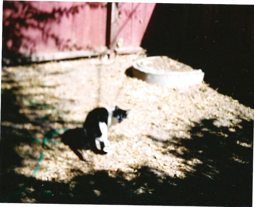 Problems came in late 2003, when Winky was 13; at the same time that she got depressed after being attacked by the black cat. Perhaps because the litter box was originally located in the back room, she sometimes had the habit of going back there, usually in the hall on the carpet. But this wasn't cool, now that I had people living back there. I thought if I hit her gently a bit and yelled at her, it would make her afraid to go back there. Winky was very smart, and I know she knew what the word "no" meant. After all, in her first year I had trained her not to go into the street, and to stay in the yard when she wanted to follow me as I walked somewhere. I lived on a busy street, and not all cats survive who live there. I also trained her not to go over to David's yard, and once after I went over the fence and retrieved her, she never went there again. Winky learned, and after a while she learned to go to the litter box again too.